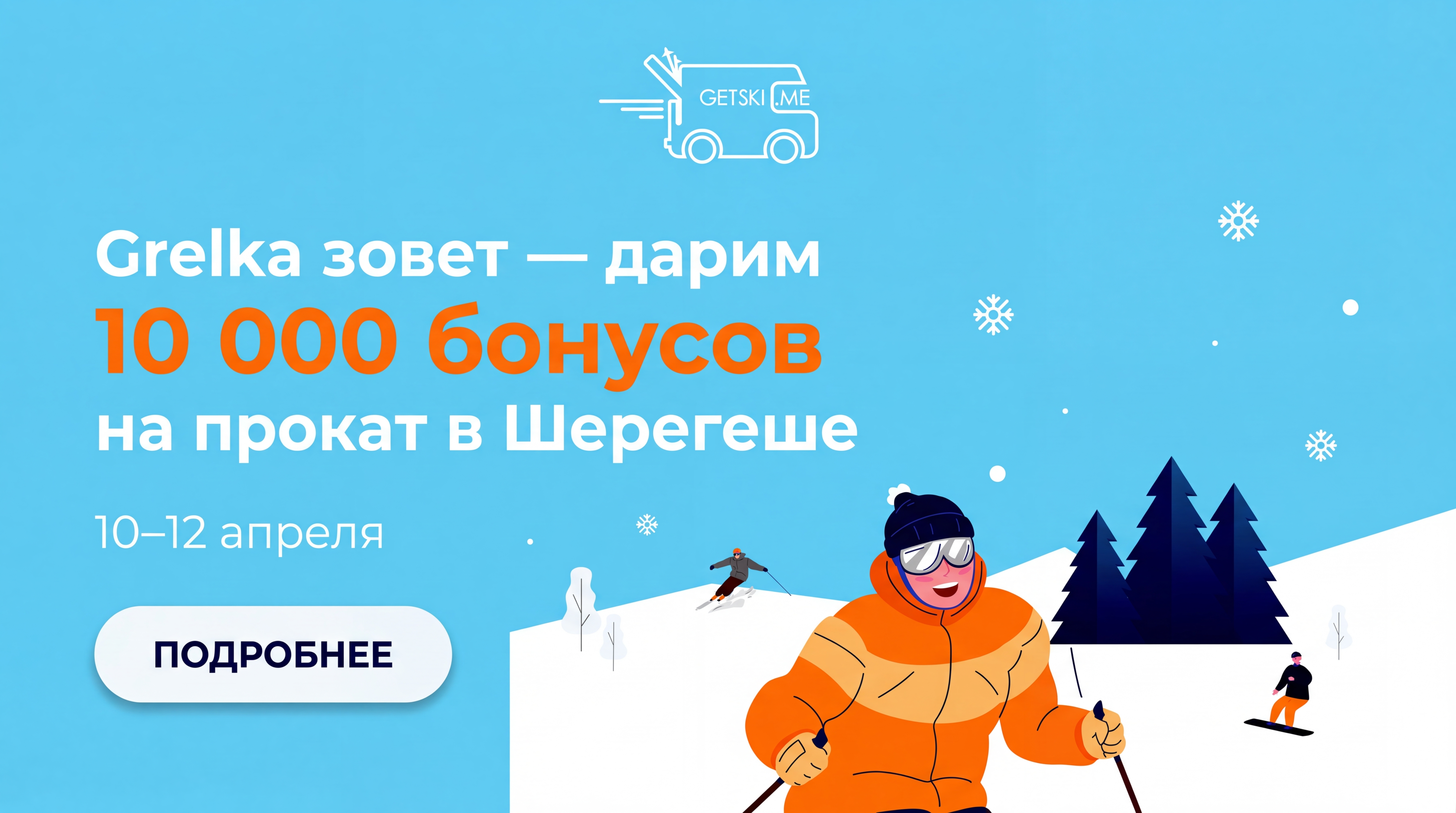 Катались на горнолыжном курорте Шерегеш первый раз! И это было бомбически! Брали сноуборды и все снаряжение на прокат в GetSki. Все рассказали, подобрали, научили. Тут не про продать, а про помочь, спасибо!